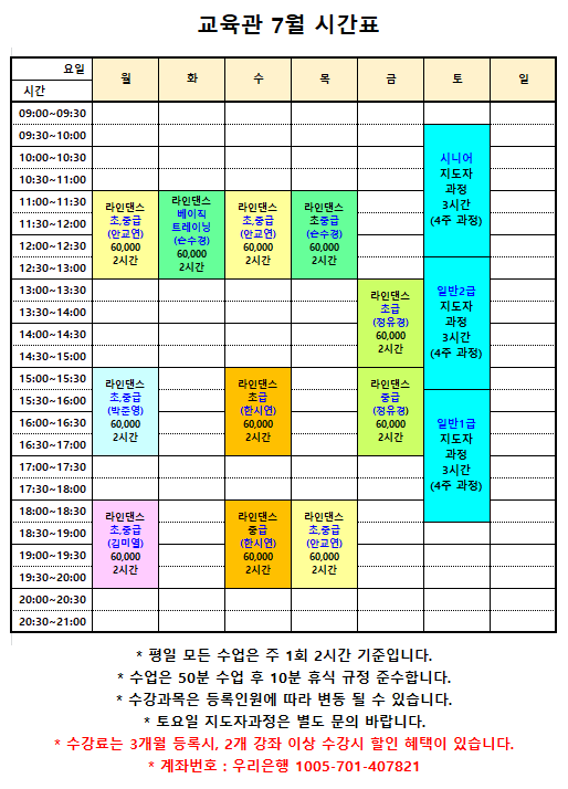 교육관 7월 시간표