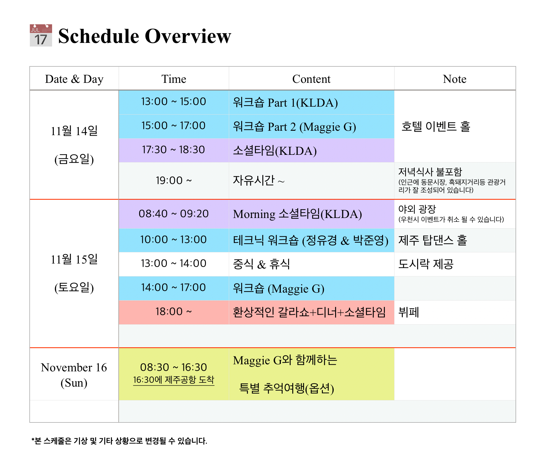 * 마지막 날, 함께하는 “제주 투어 데이!”(선택 옵션)