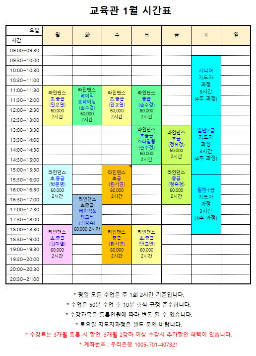 라인댄스 초급반(강사 한시연) 수요일 3~5시