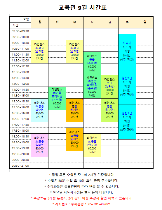 교육관 9월 시간표