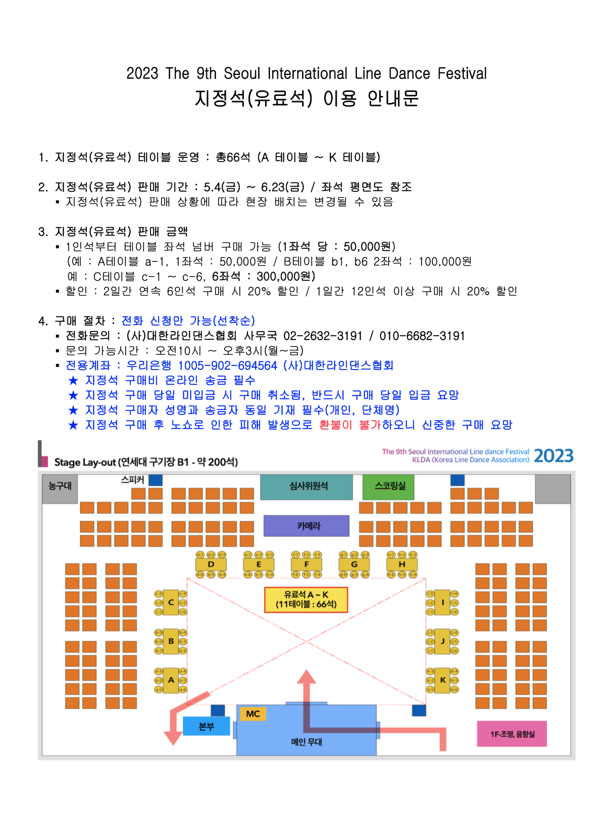 2023 제9회 서울국제라인댄스 페스티벌 지정석(유료석) 안내문