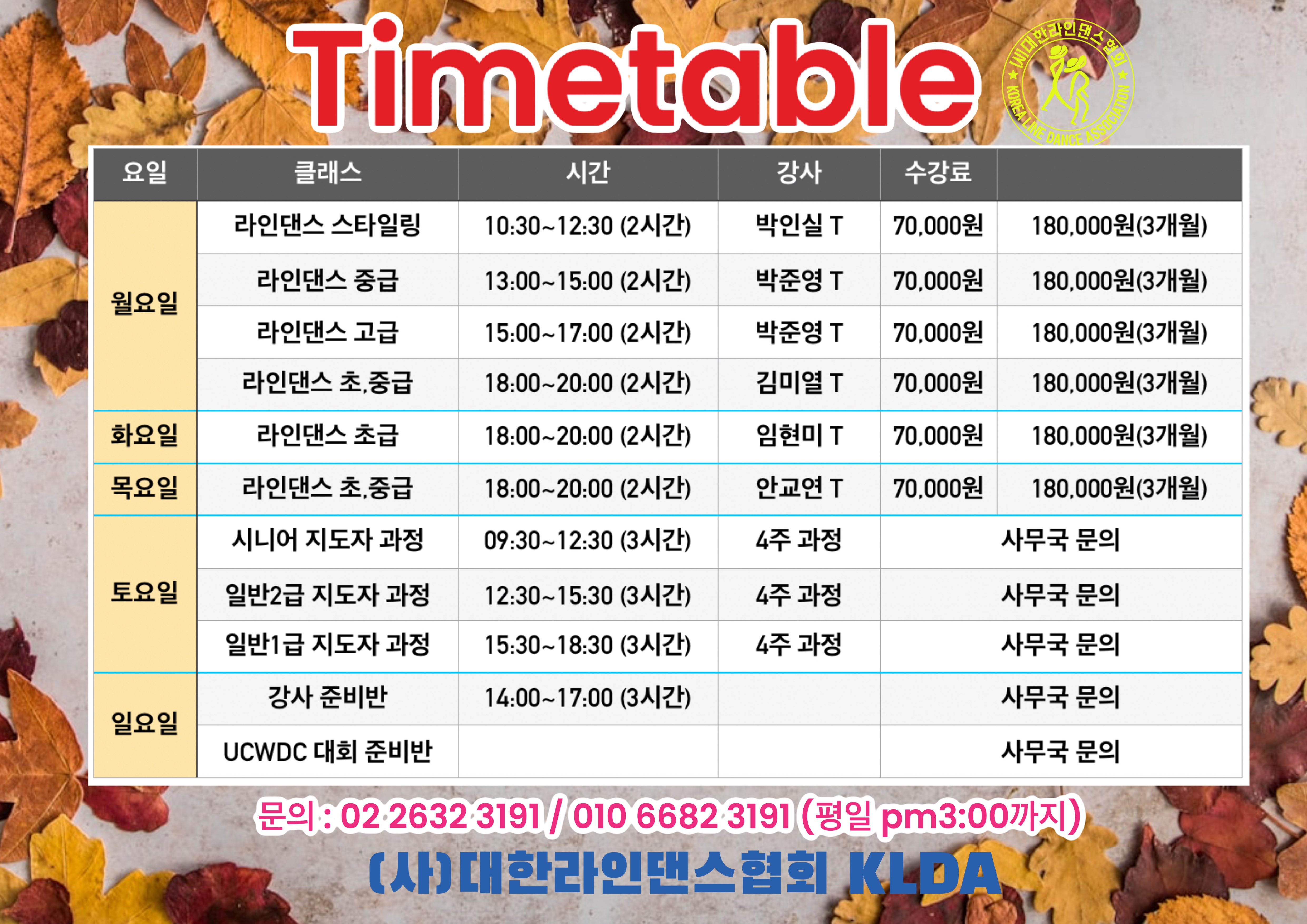 *토요일 지도자 과정 및 UCWDC 작품 준비반은 별도 문의 바랍니다.