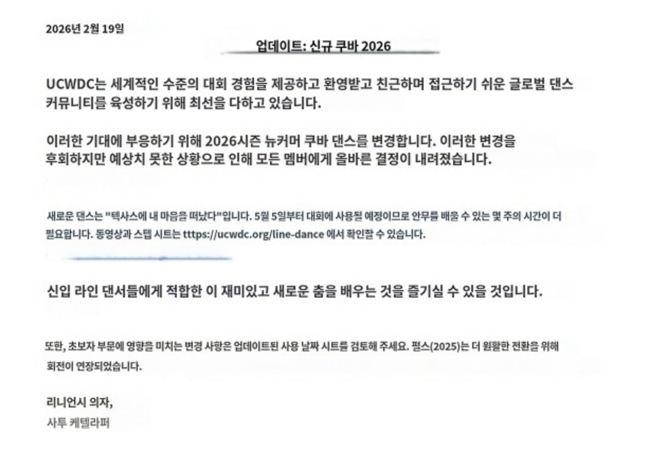 2026 서울 국제라인댄스페스티벌 뉴커머 큐반 작품 변경