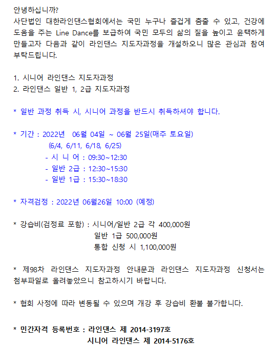 98차 지도자과정 안내
