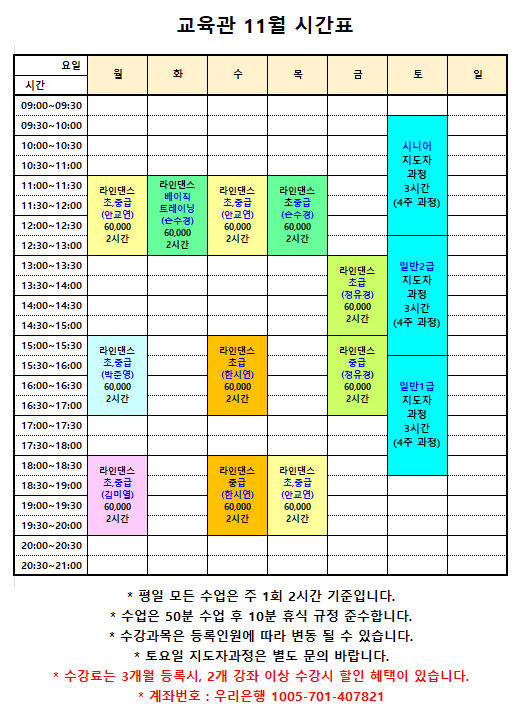 교육관 11월 시간표