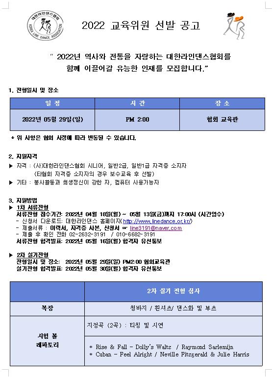 2025 라인댄스 국내심판 1급,2급 자격 교육 안내