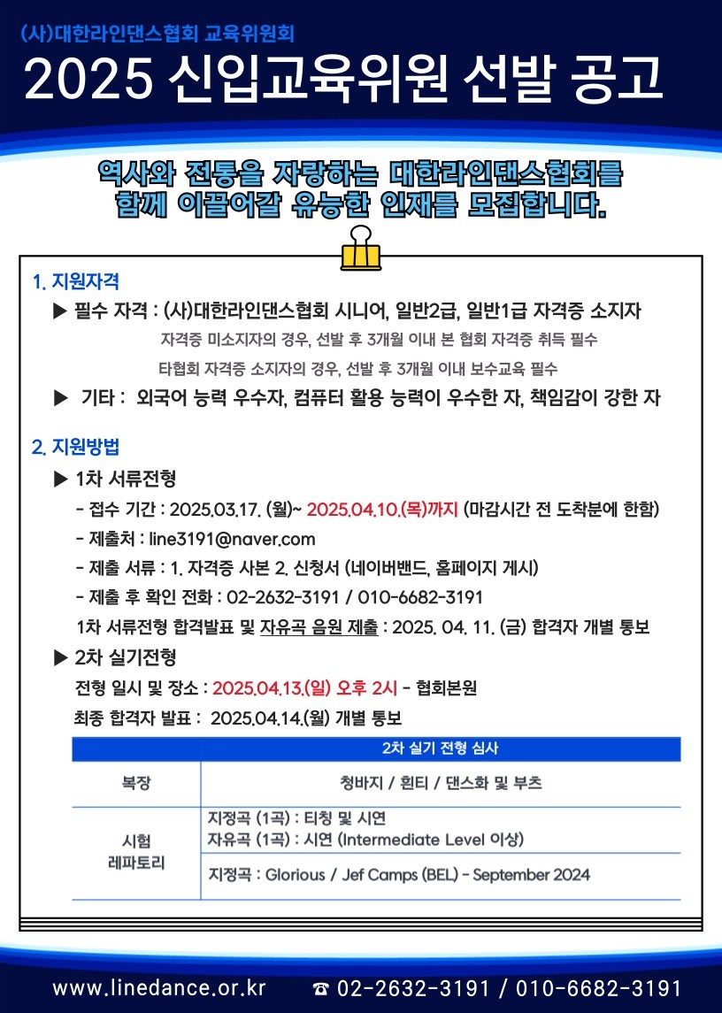 《대한라인댄스협회 2025년 신입 교육위원선발》