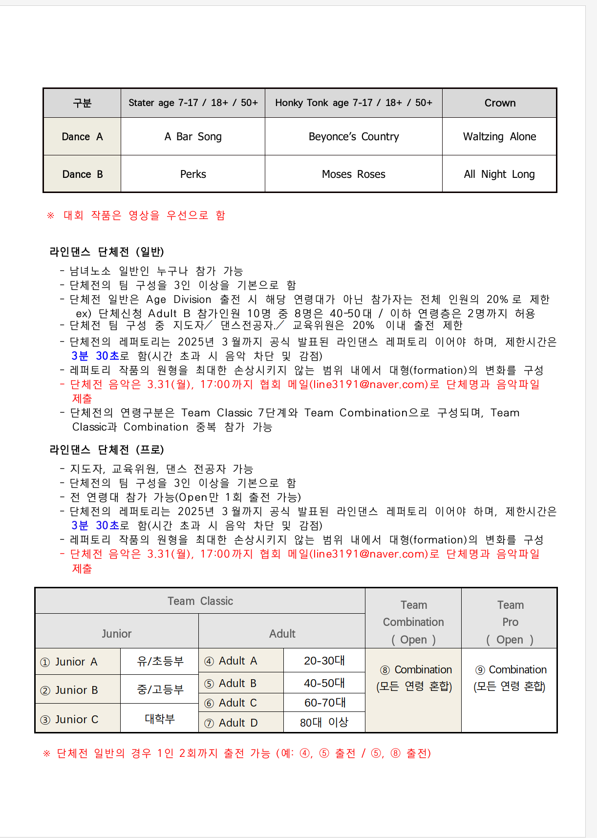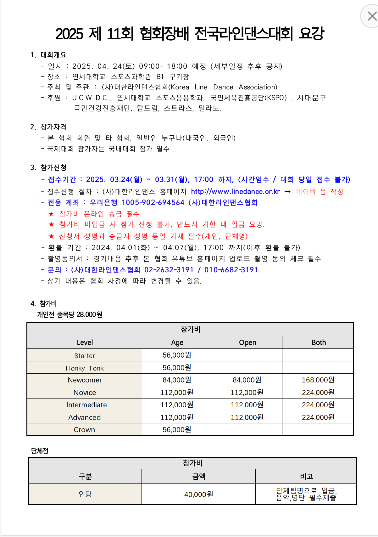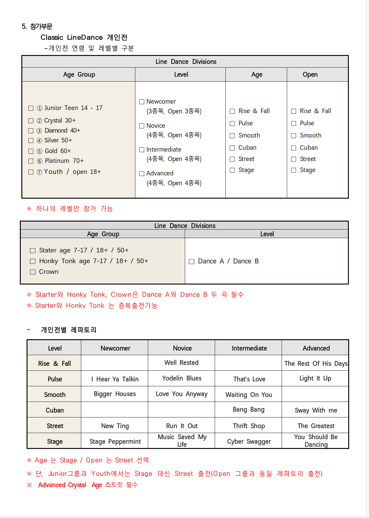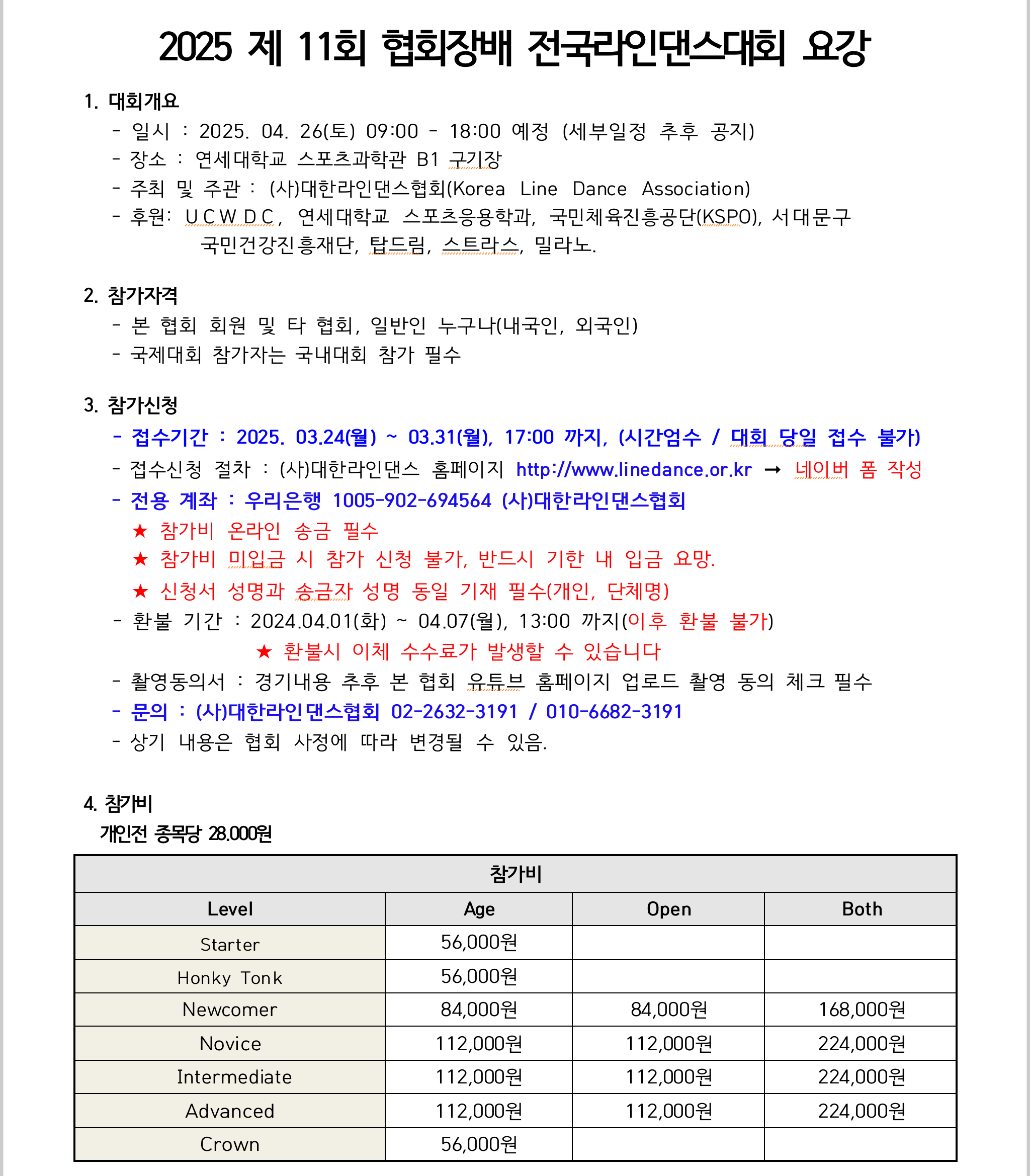 *참가자격 : UCWDC 국제대회는 필히 대한라인댄스협회가 주관하는 국내대회 참가자에 한합니다.