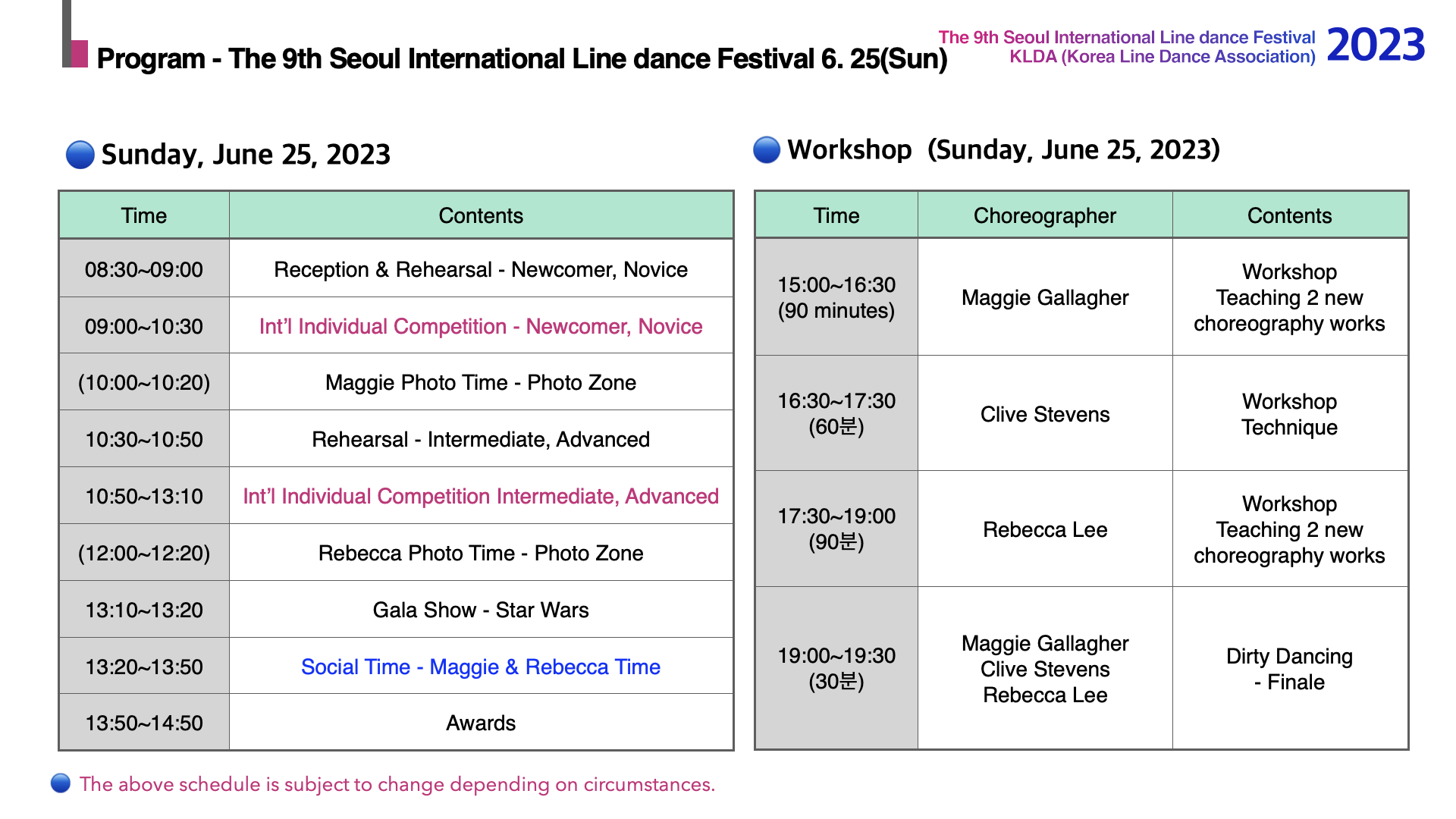 2026 서울 국제라인댄스페스티벌 뉴커머 큐반 작품 변경