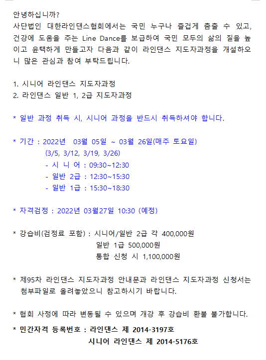2025 라인댄스 국내심판 1급,2급 자격 교육 안내