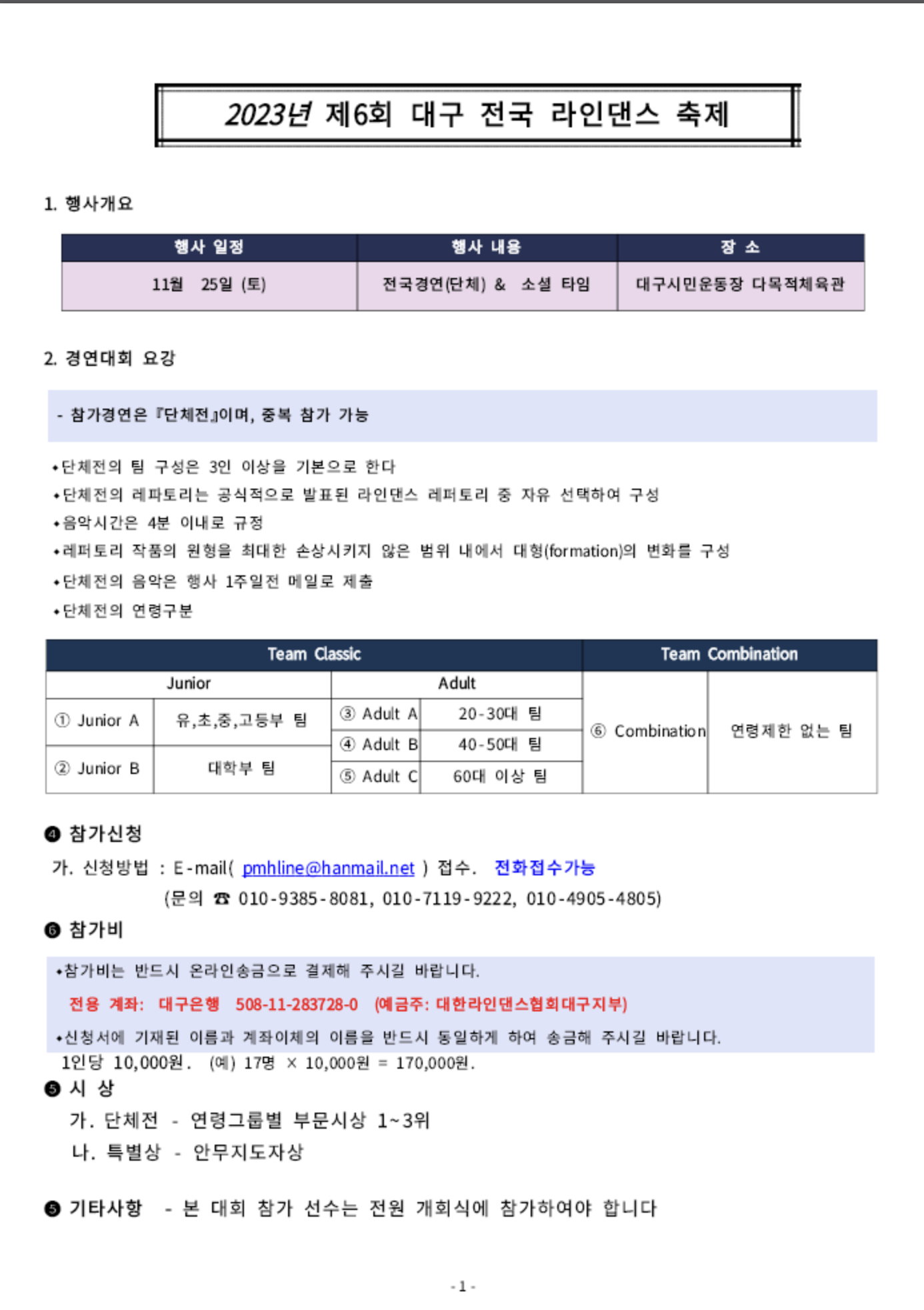 제6회 대구 전국 라인댄스 축제에 여러분을 초대합니다.