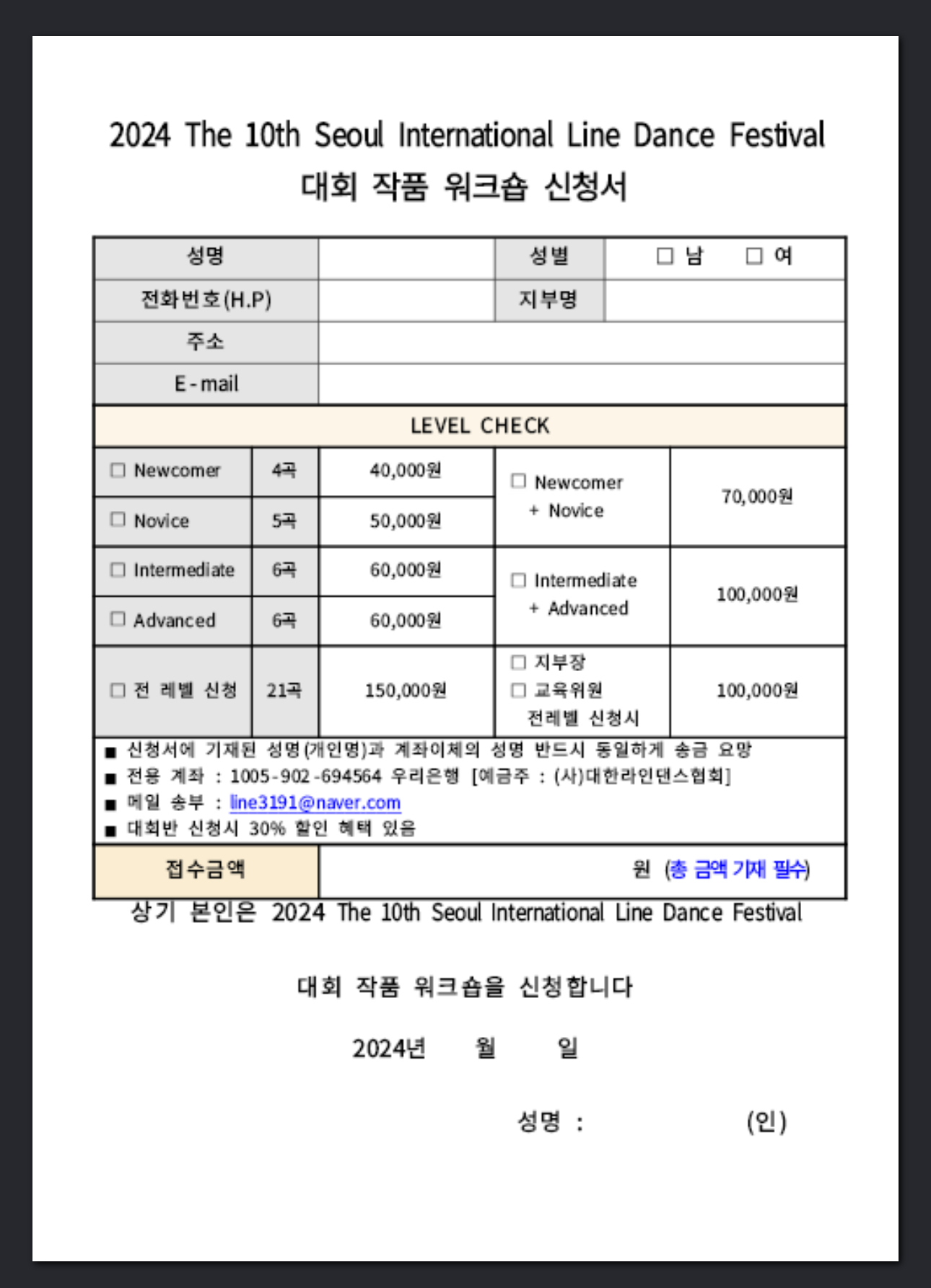 2024 제10회서울국제라인댄스 페스티벌 대회작품 워크숍 신청서.hwp