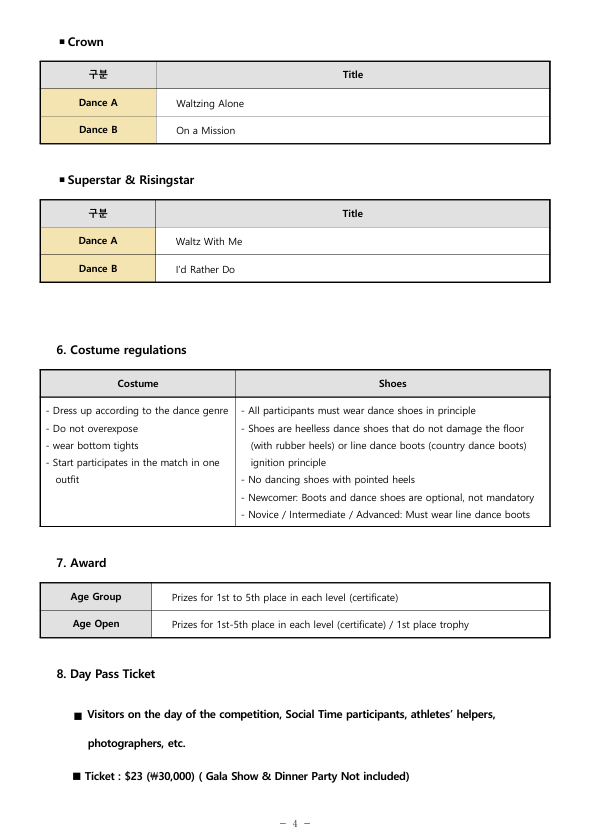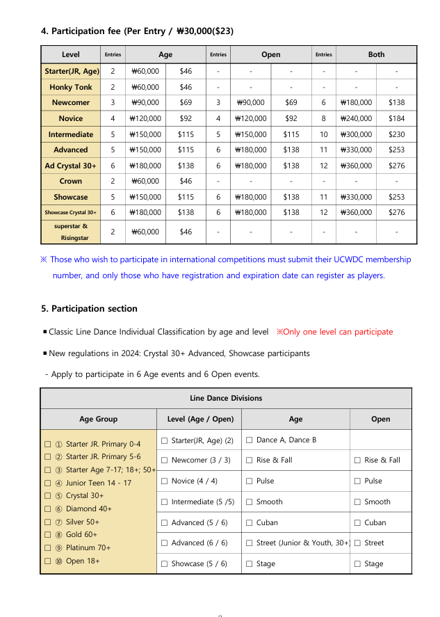- Application procedure : Korea Line Dance Association website http://www.linedance.or.kr