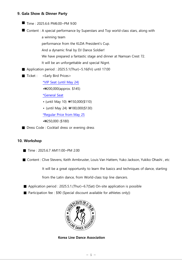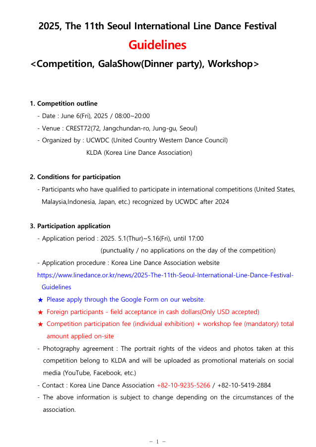 - Contact : Korea Line Dance Association +82-10-9235-5266 / +82-10-5419-2884