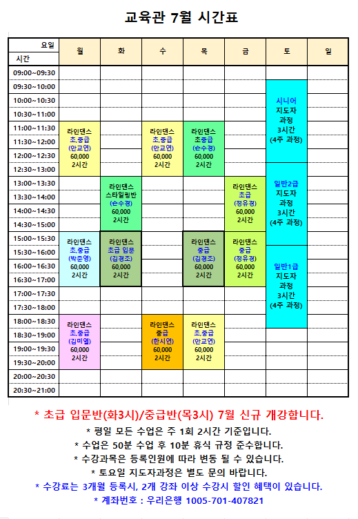 7월 교육관 시간표