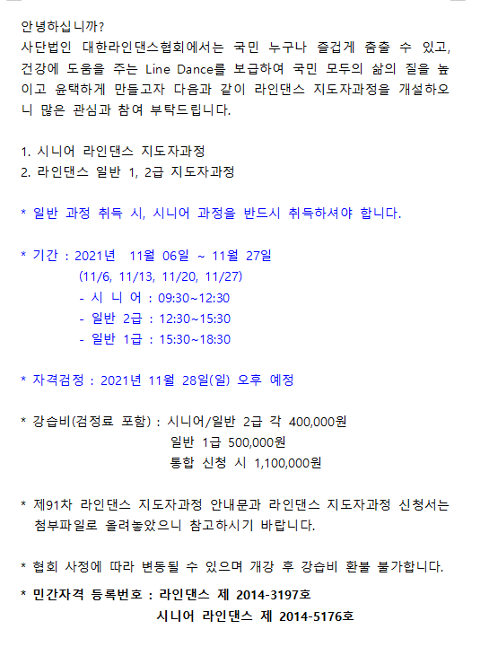 91차 지도자과정 안내